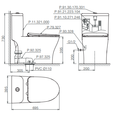 Tên sản phẩm: Bàn cầu liền khối Platinum