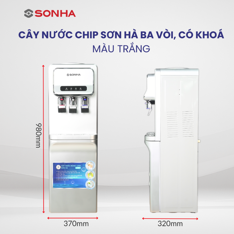 Cây nước nóng lạnh Chip Sơn Hà ba vòi, màu trắng có khóa được làm từ chất liệu nhựa cao cấp, có tuổi thọ cao với khả năng chịu nhiệt và chịu lực ấn tượng. Đây không chỉ là “người bạn đồng hành” trong mỗi gia đình mà còn là thiết bị không thể thiếu tại các văn phòng, cung cấp nguồn nước nóng và lạnh tùy thích, nâng cao chất lượng cuộc sống của con người.