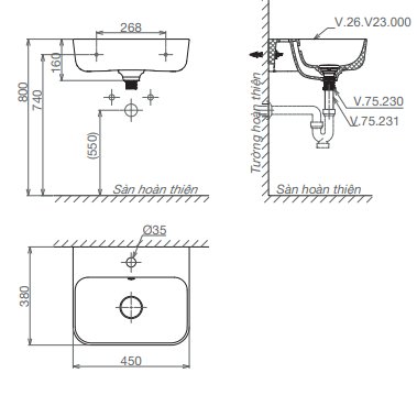 Tên sản phẩm: Chậu + Chân treo tường V23