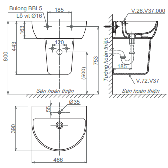 ( không bao gồm vòi chậu và syphong thoát nước)
