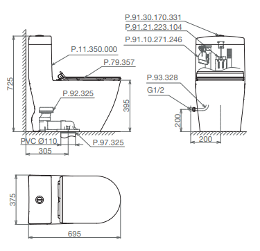 Tên sản phẩm: Bàn cầu liền khối Platinum