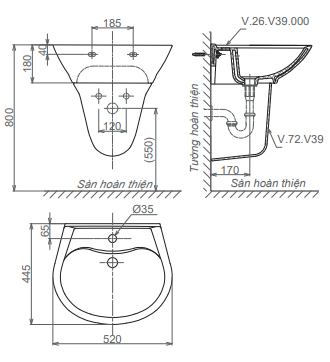 ( không bao gồm vòi chậu và syphong thoát nước)